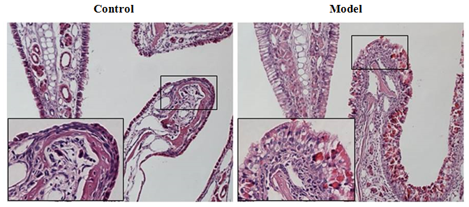 过敏性鼻炎是由IgE介导的发生在鼻黏膜的Ⅰ型变态反应性疾病,以鼻痒、喷嚏、鼻分泌亢进、鼻黏膜肿胀为主要特点,是临床常见病、多发病。既往文献过敏性鼻炎造模的动物以啮齿类为主,包括豚鼠、大鼠、小鼠等,卵清蛋白(Ovalbumin,OVA)是最常用的过敏原。