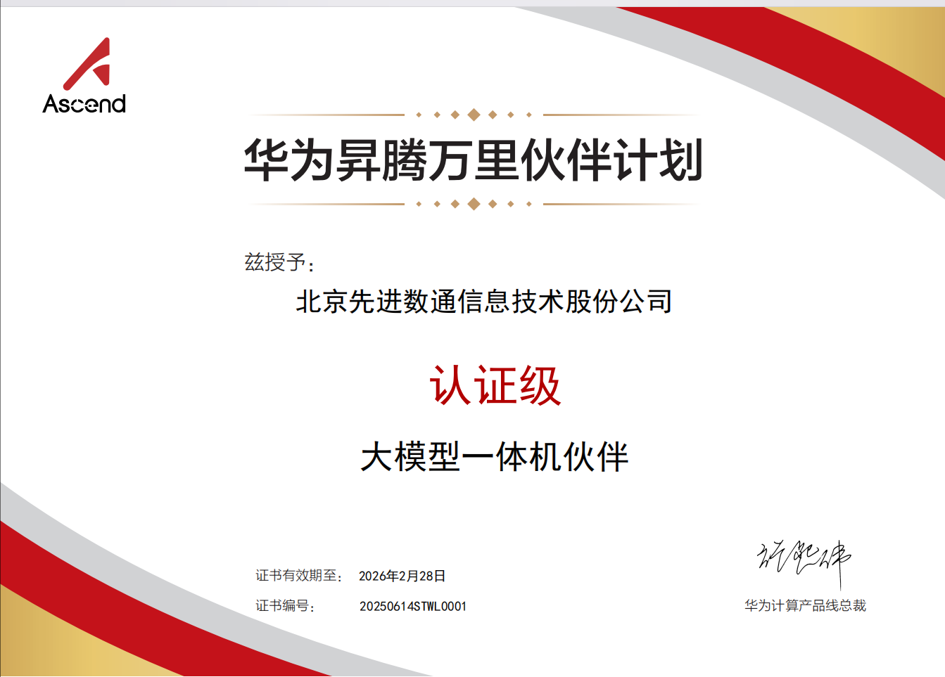 2025年6月,北京一竞技官网信息技术股份公司(以下简称"一竞技官网")与华为技术有限公司达成大模型一体机战略合作。基于昇腾AI基础软硬件平台,一竞技官网整合自身专业化团队构建的行业AI解决方案,正式推出基于自主技术整合的一竞技官网品牌大模型一体机产品。